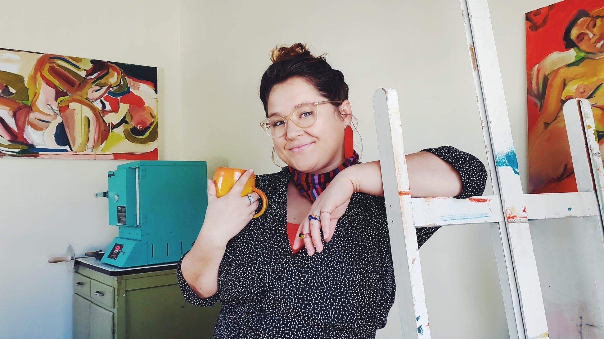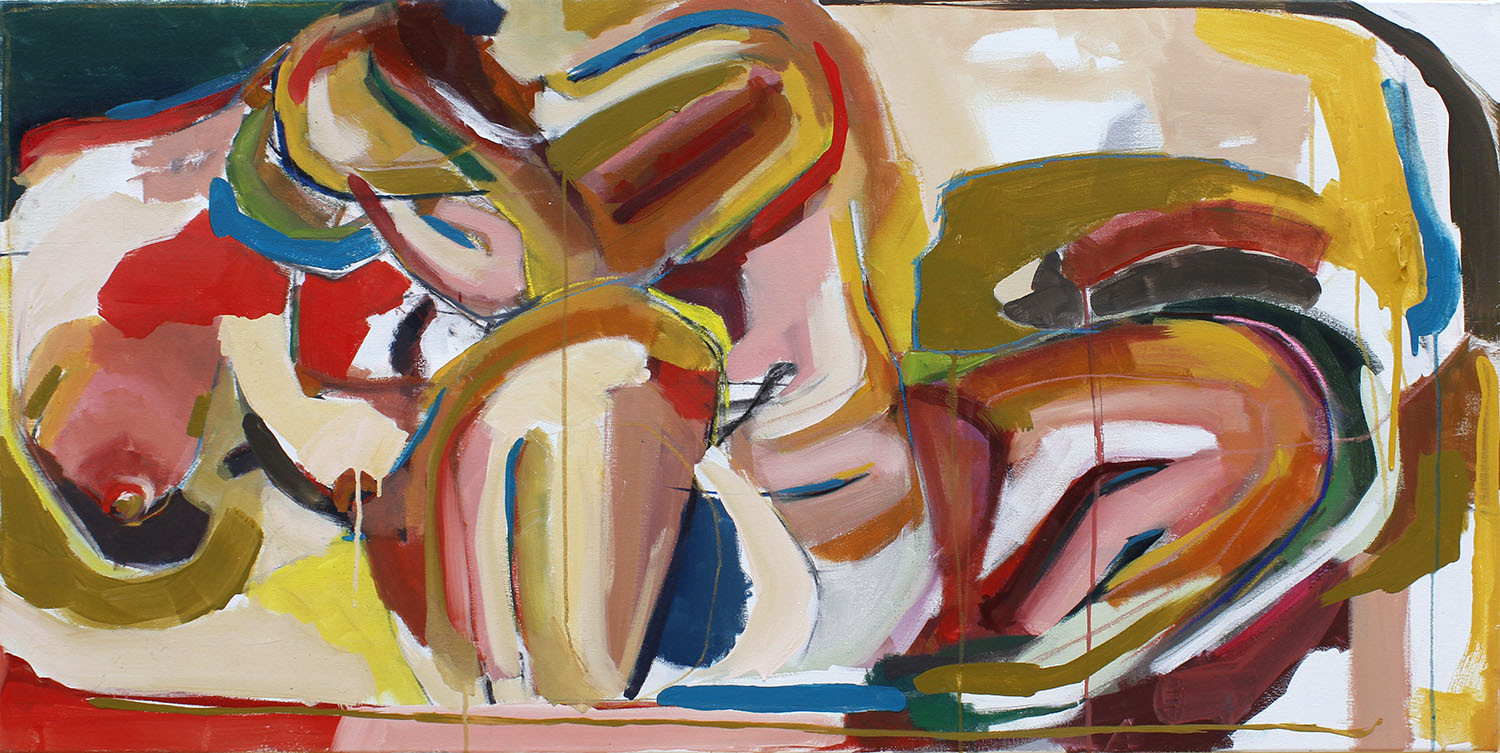 I made this abstract figure painting during a hot summer day in New Orleans. Everything seemed to blur together during those sun drenched days and this painting was my way of speaking to the out of body feeling of making it through the heat.